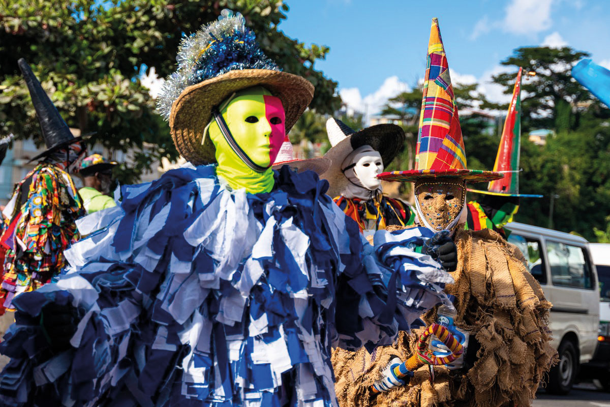 The season begins weeks before Lent, featuring calypso shows, village events, and pageants. An opening parade, held about a month before, sets the celebrations in motion. The main days are Carnival Monday and Tuesday, which in 2026 will fall on 16 and 17 February, just before Ash Wednesday. J’Ouvert starts early on Monday morning with drumming, singing, and street parades, while the celebration ends with Tewe Vaval, a symbolic burial ritual on Ash Wednesday 18 February, indicating the start of Lent.